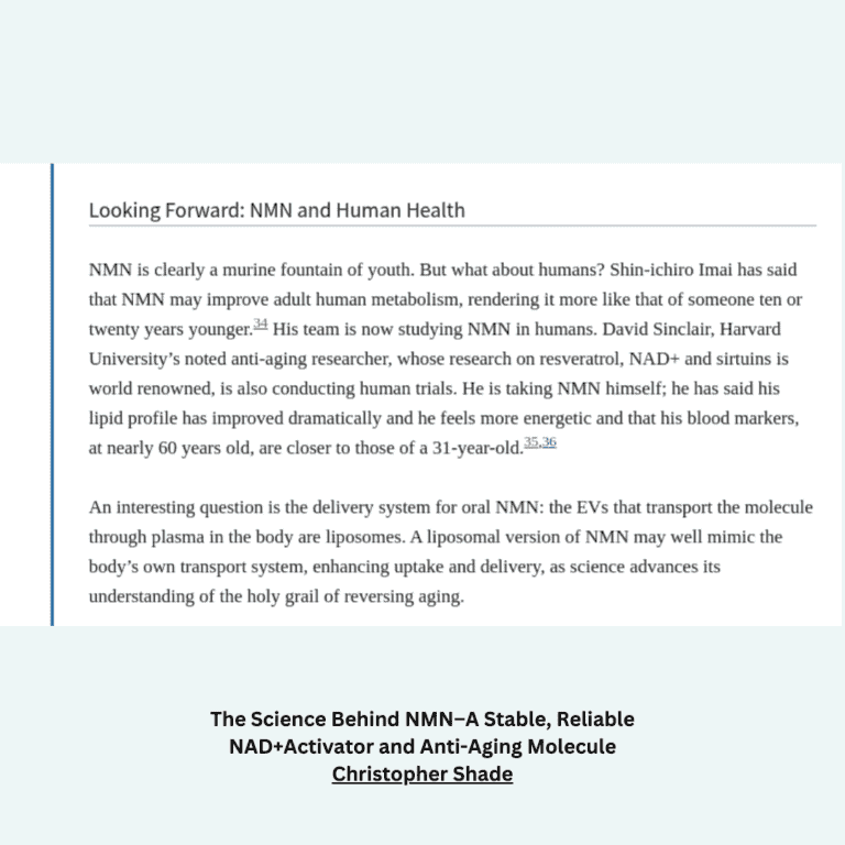 Cardiovascular Protection – NMN was shown to improve blood vessel function, increasing nitric oxide production and reducing arterial stiffness, which are key factors in preventing cardiovascular diseases.